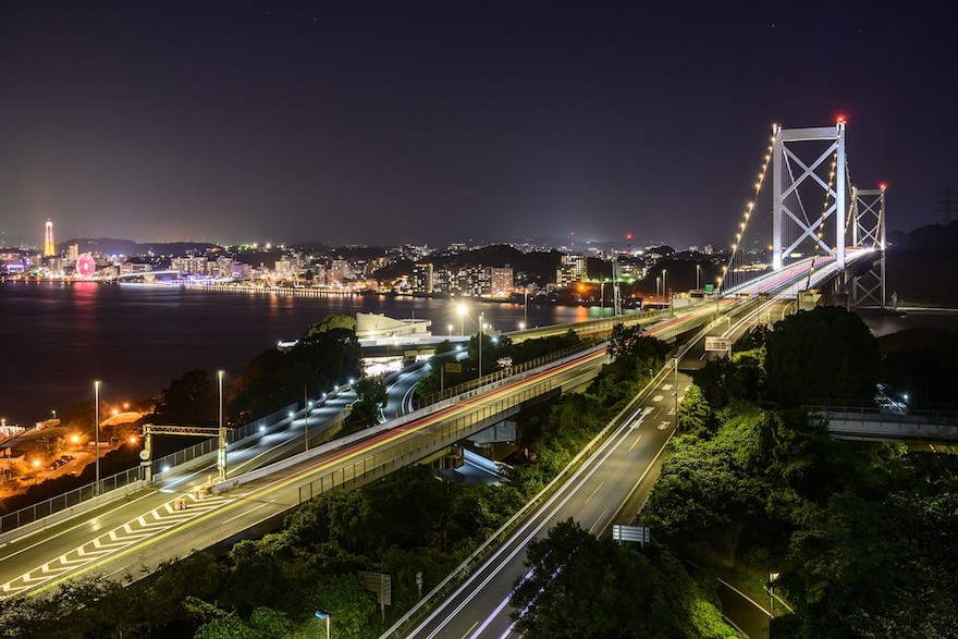A night view spot overlooking the Kanmon Bridge. Not only is it great for the night view but also popular for sunset viewings.
