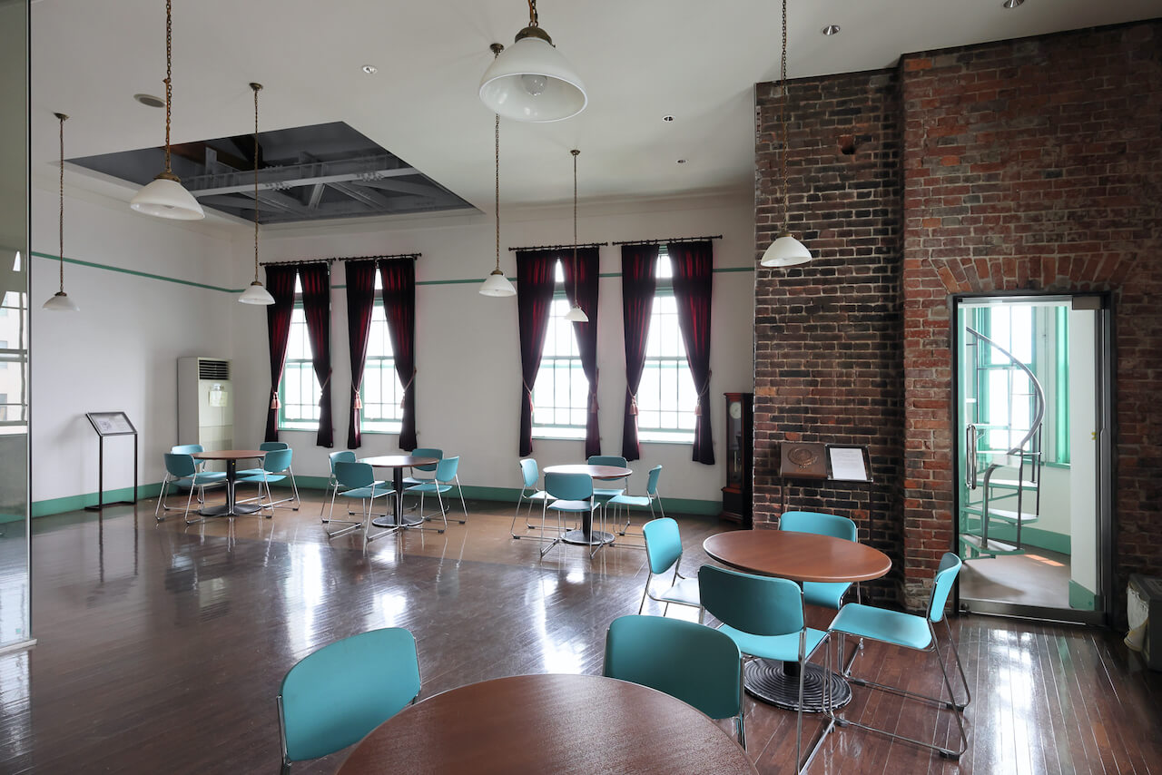 建物は前面道路の形状に合わせて平面が鋭角となり、道路が交差する隅の部分に3階建ての塔屋を配置。外観は縦長の窓、均等に配された付柱で垂直線を強調しています。レンガ造り2階建ての建物内部は誰でも無料で見学できます。また、2004年には保存改修工事を経て「交流・文化・観光」の拠点施設として生まれ変わりました。現在は多目的ホールや貸し会議室などさまざまな目的に利用され、市民の暮らしを支えています。