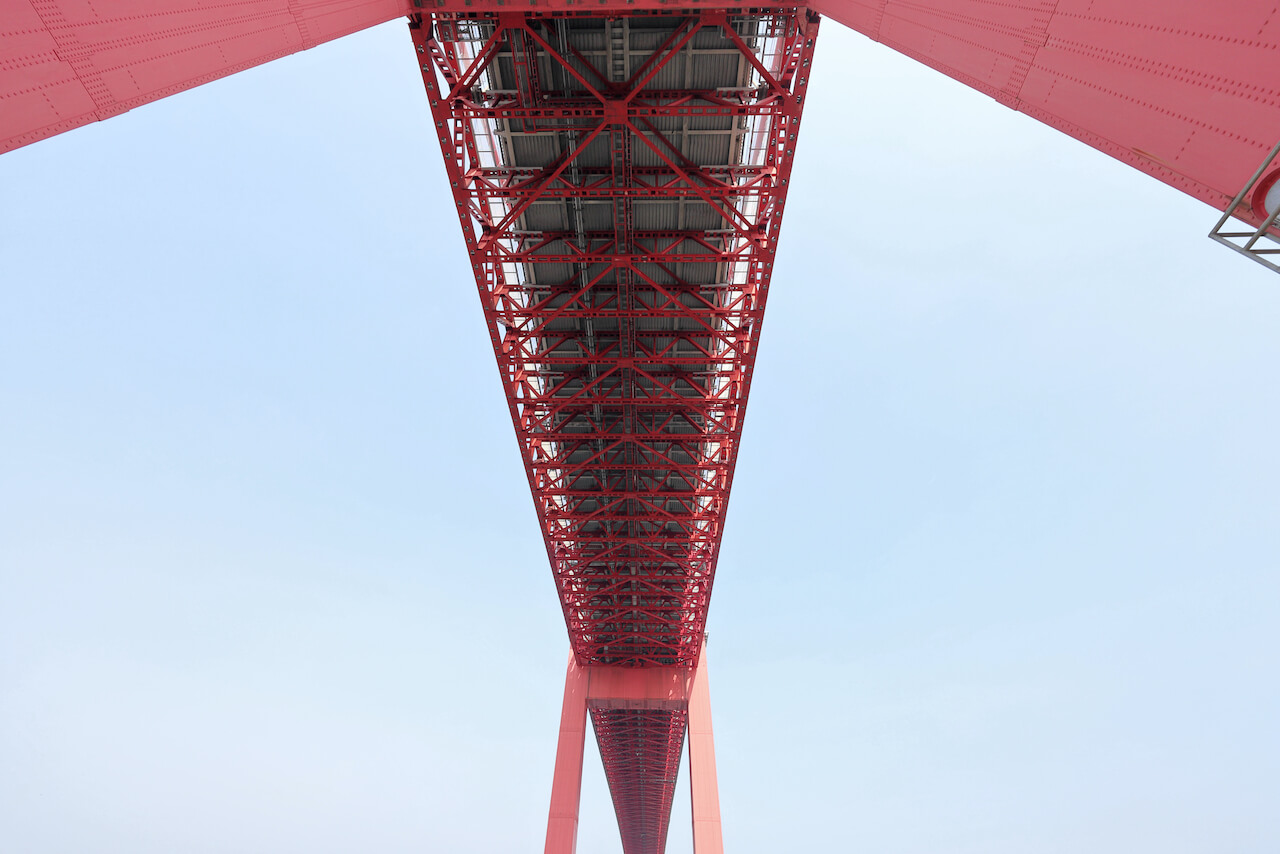 設計・建設にあたっては、国の土木研究所や東京大学の研究者なども加わり、当時の国の技術の粋が結集され、さまざまな調査研究が約2年半にわたって行われたといいます。「日本初の長大なつり橋を造る」という多くの人たちの情熱と努力によって建設された若戸大橋の経験が、のちの関門橋や本州四国連絡橋、レインボーブリッジなど、世界に誇る日本の長大つり橋建設に活かされています。