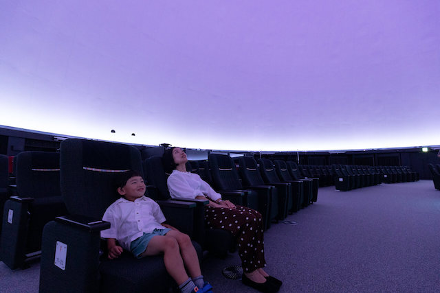 3F「プラネタリウム」は直径30mのドームを備え、最新の光学式投映機と全天周デジタル式プロジェクタで幻想空間を再現します。壮大な映像美と迫力のあるサラウンドに、親子で大興奮!また投映中に子供が泣いてしまった場合でも防音の「あんしんシート」があるので、小さな子供を連れての来場も安心です。(サイエンスLABO(1F・2F)とプラネタリウム(3F)は、それぞれ事前予約が必要です。)