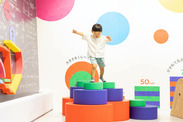 0〜6歳を対象としたキッズスペースは自由に利用可能です。物の大きさを比べたり、クッションを重ねて高さを調べたり、とこちらでも子供の学びを応援。
