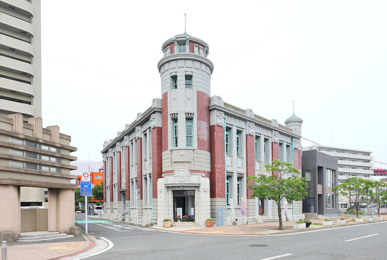 「石炭会館」が建てられたのは1905(明治38)年。若松区内に現存する洋風建築としては最も古い建造物で、建築当初は若松石炭商同業組合の事務所として利用されていました。現在も企業の事務所として使用され、1階にはクロワッサンで有名な「三日月屋 若松店」が入っています。こちらも先述の「旧古河鉱業若松ビル」同様、日本遺産「関門“ノスタルジック”海峡~時の停車場、近代化の記憶~」の構成文化財として認定されています。