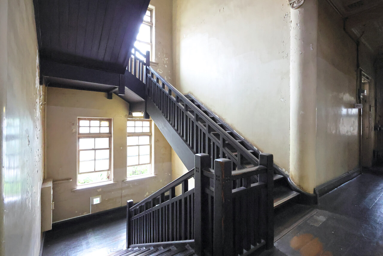 当時の面影を残す木製階段