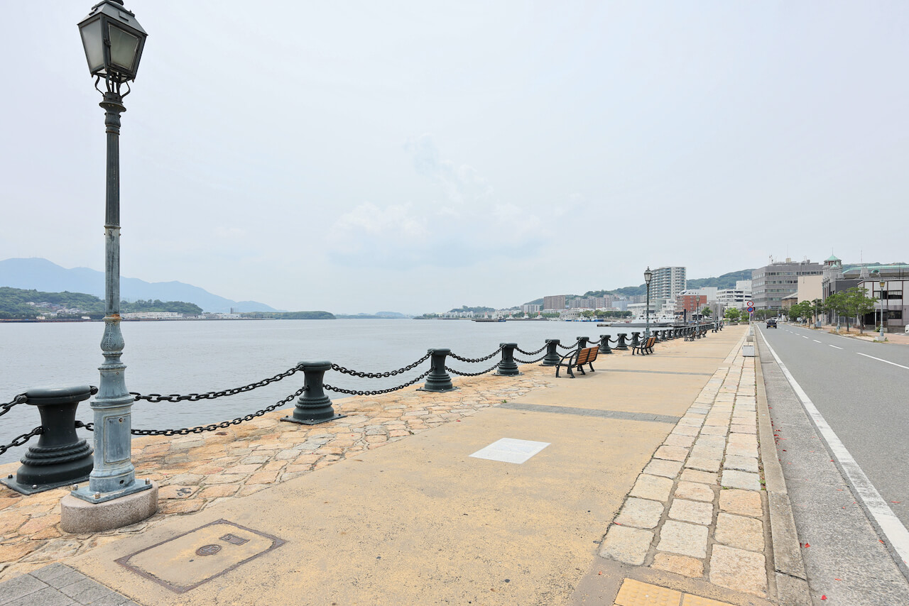 戸畑から若松へ渡った先は、歴史情緒漂う港町。「若松南海岸通り」(通称:若松バンド)は、明治から大正にかけて石炭の一大積出港として繁栄した若松を象徴する建築物や史跡が残るエリアです。大正期の建物群を中心とした近代港湾都市固有の帯状の都市空間となっており、バンド特有の景観を残す港湾都市は、港湾機能を失った都市を除けば日本では若松だけとか。ノスタルジックな街歩きを楽しめる貴重な場所なのです。